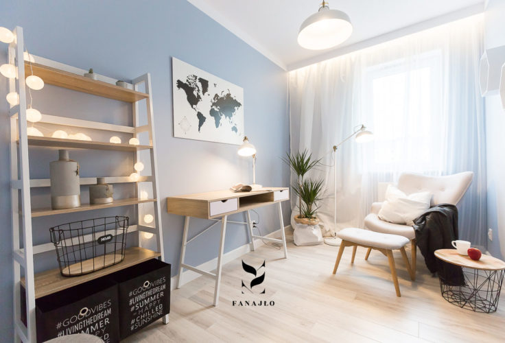 Projekt apartamentu na sprzedaż w stylu skandynawskim wykonany przy współpracy z http://www.flat-white.pl/..